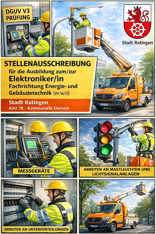 Bist Du interessiert? Dann bewerbe Dich bitte mit einem aussagekräftigen Anschreiben, Lebenslauf und Kopien der letzten beiden Schulzeugnisse bis zum 20.03.2026 über das Βewerbungsportal der Stadt Ratingen www.stadt-ratingen.de